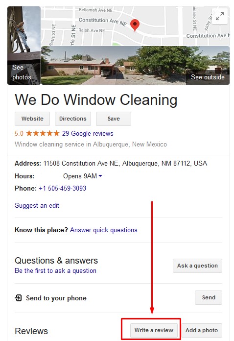 Post your review on Google by clicking on "Write a review" link, on the right side of the page: